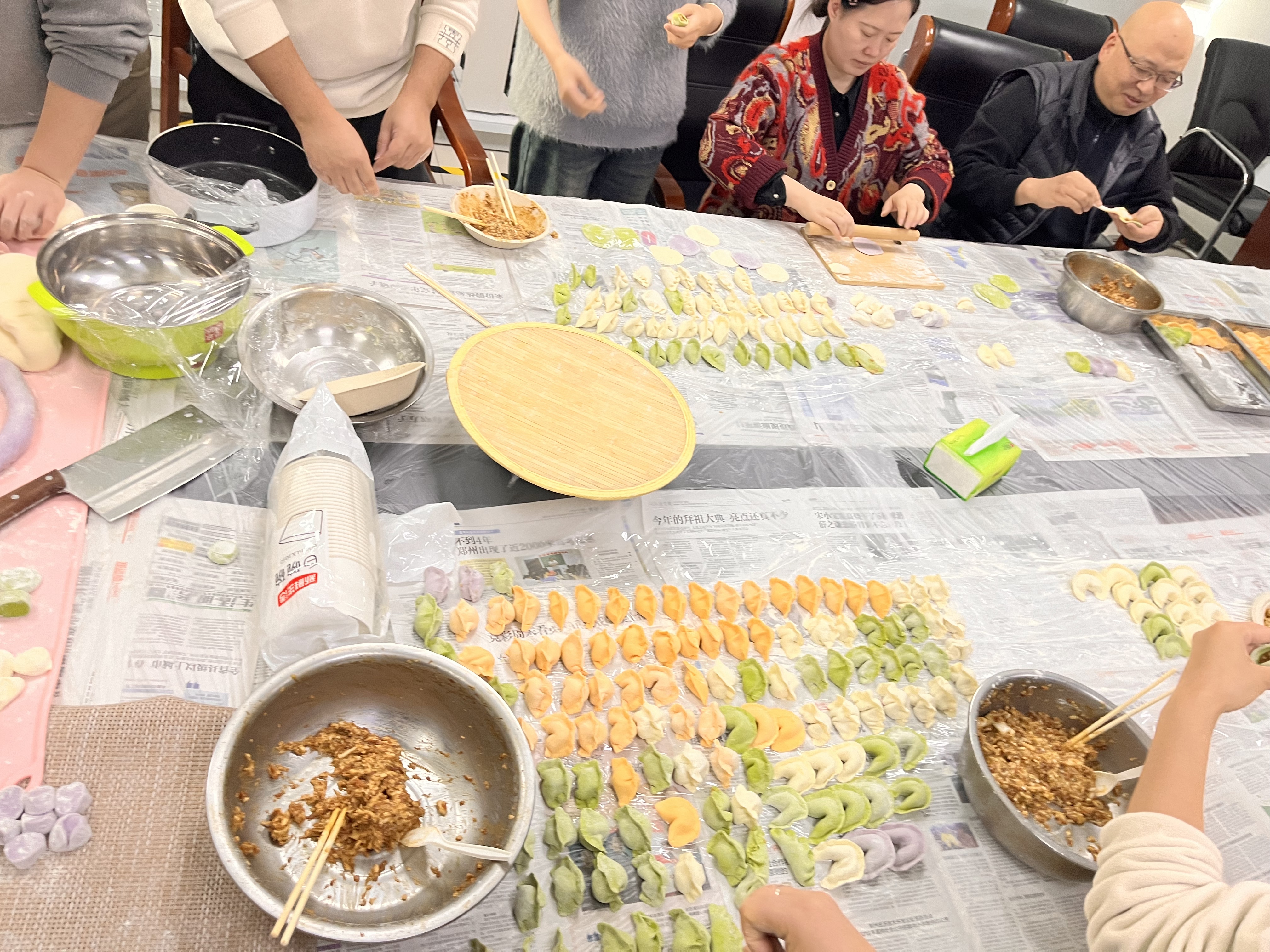 活動當天,公司的會議室搖身一變,成為了一個溫馨的“餃子工坊”。同事們圍坐一圈,桌上擺滿了面團、餡料和各式各樣的包餃子模具。隨著一聲令下,大家紛紛卷起袖管,投入到熱火朝天的包餃子大軍中。有的同事手法嫻熟,包出的餃子形狀各異;有的動作略顯笨拙,但在同事們 的鼓勵和幫助下,也漸漸找到了感覺,包出了自己滿意的作品。