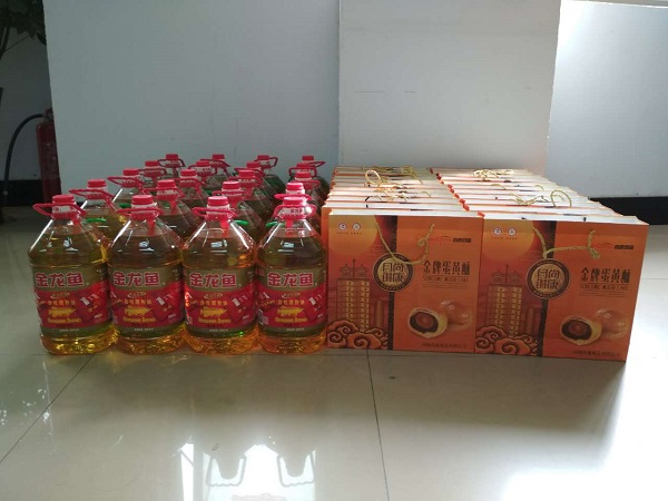 今年國慶節(jié)和中秋節(jié)正好是趕到了一起,所以公司領導也是提前準備了節(jié)日福利,為大家送去祝福。今年的福利包括一桶食用油和一盒金牌蛋黃酥月餅,充分體現(xiàn)了公司領導對員工的關心和祝福。