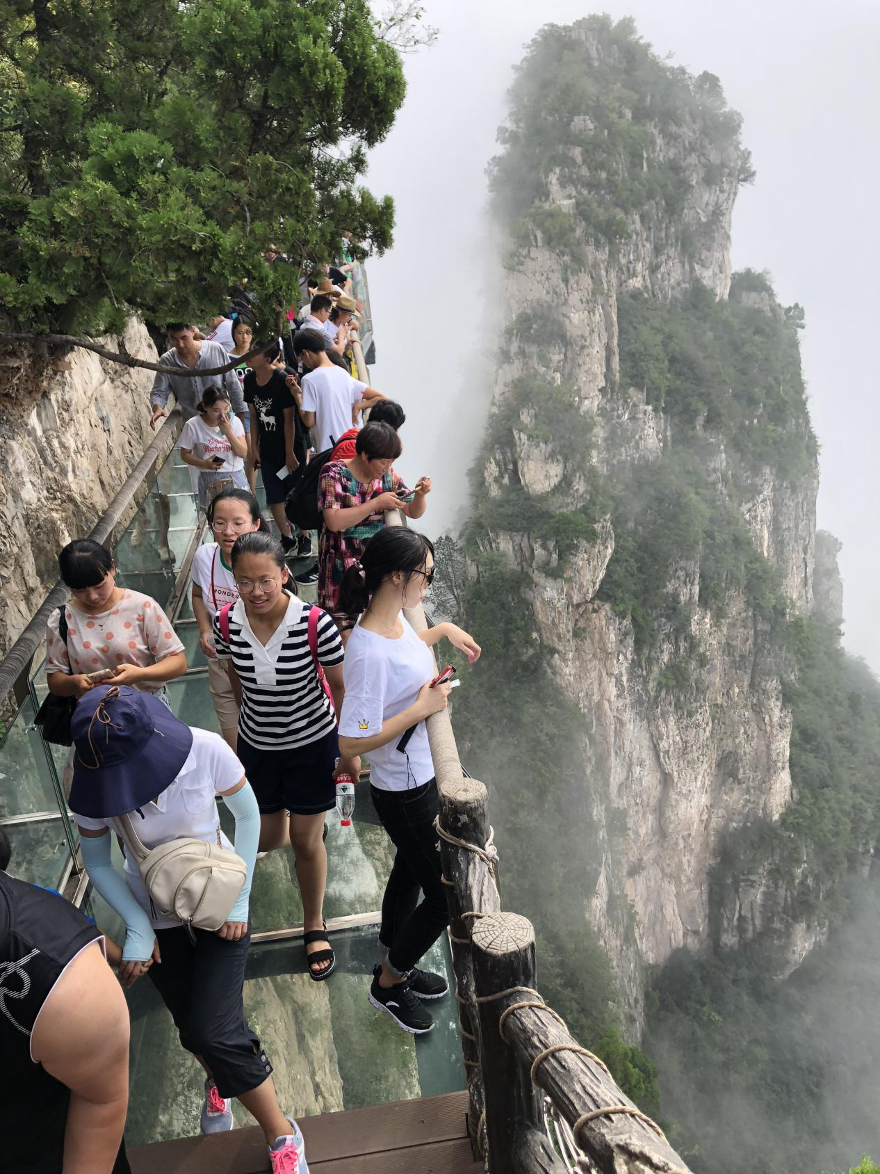 根據(jù)行程安排,大家先后游覽了“華夏第一秀水”小寨溝、“華夏第一奇峽”紅石峽,以“三步一泉,五步一瀑,十步一潭”而著稱的老潭溝及野生獼猴保護(hù)區(qū)獼猴谷,第二天大家去感受萬丈凌空的驚險、欣賞群峰林立的美景--云臺山玻璃棧道,并登上千階的云梯棧道——海拔1308米的茱萸峰頂,途中坐車經(jīng)過了14個疊彩洞,當(dāng)天早上霧氣彌漫,體驗(yàn)了前所未有的云中乘車。迷人的自然風(fēng)光讓大家流連忘返。