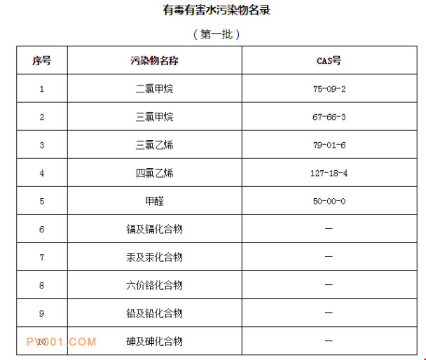 生態(tài)環(huán)境部與國(guó)家衛(wèi)生健康委員會(huì)公布了《有毒有害水污染物名錄(第一批)》。與征求意見(jiàn)稿相比(環(huán)境部征求《有毒有害水污染物名錄(第一批)》名單),最終名單增加了甲醛,一共10類(lèi)。這10類(lèi)物質(zhì)是二氯甲烷、三氯甲烷、三氯乙烯、四氯乙烯、甲醛、鎘及鎘化合物、汞及汞化合物、六價(jià)鉻化合物、鉛及鉛化合物、砷及砷化合物。