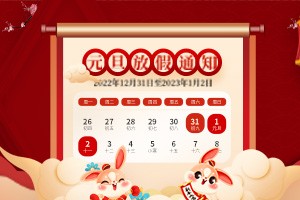 2023年元旦佳節(jié)將至,首先向全體員工致以節(jié)日的問(wèn)候,為了大家能度過(guò)歡樂(lè)、祥和、平安的節(jié)日,特提醒全體人員注意以下幾點(diǎn): 1.2023年元旦放假時(shí)間:自2022年12月31日至2023年1月2日,放假3天。2023年1月3日(星期二)照常上班。 2.各部門在節(jié)前要組織一次安全檢查,杜絕一切安…