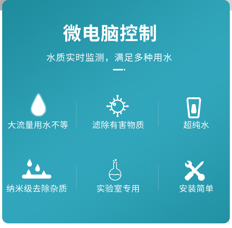 GA系列實(shí)驗(yàn)室純水機(jī)以反滲透和深度離子除鹽為制水工藝基礎(chǔ),設(shè)備直接連接城市自來(lái)水,可制備達(dá)到國(guó)標(biāo)GB6682-2008一級(jí)水質(zhì)的實(shí)驗(yàn)用超純水。